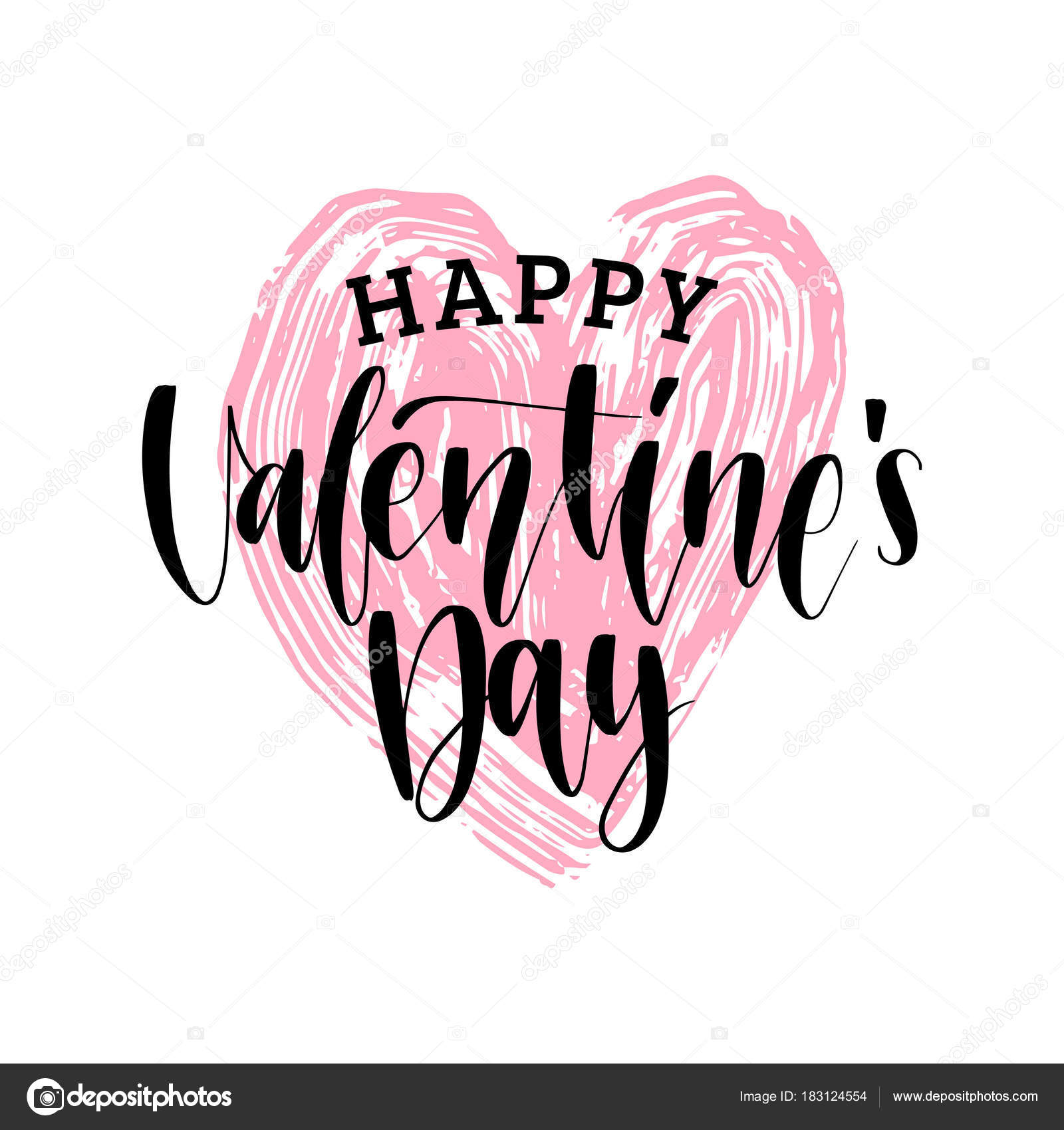Vector Stock Happy Valentines Day Hand Lettering February 14 Greeting Card Calligraphy With Romantic Heart Vintage Love Background Clipart Illustration Gg101678531 Gograph