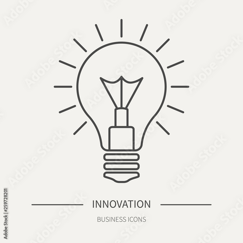 Bulb Concept Of Innovation Or Ideas Business Icon In Flat Thin Line Style Graphic Design Elements For Ad Apps Website Packaging Poster Or Brochure Vector Illustration Stock Vector Adobe Stock