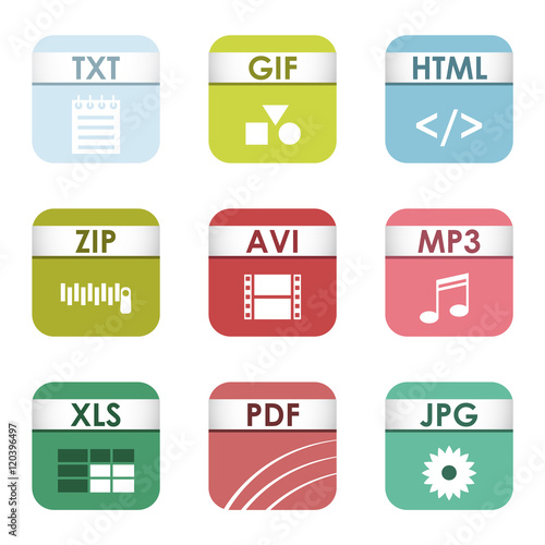 Square File Types And Formats Labels Icon Set File Type Format Stock Photo Picture And Royalty Free Image Image 126893342
