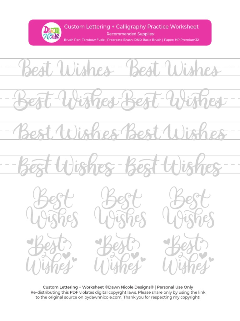 Best Wishes Lettering Worksheets